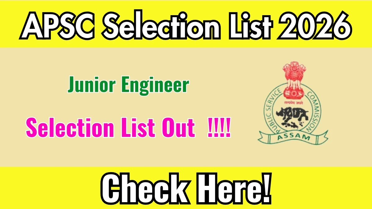 This article provides complete information about APSC JE Selection List 2026 including direct download links, how to check, important dates for Screening Test, hall ticket, and next selection process.