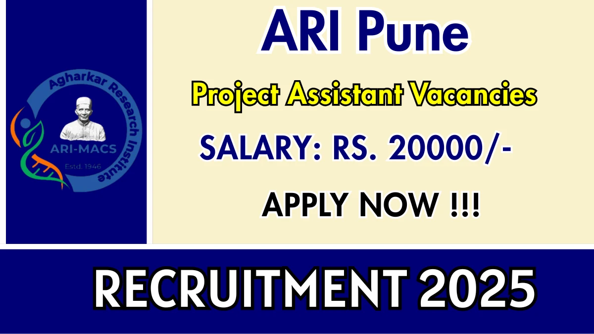 The Agharkar Research Institute (ARI Pune) Recruitment 2025 for 01 posts of Project Assistant. Candidates with B.Sc Can Apply Online. The online application opens on 23-09-2025, and closes on 06-10-2025. The candidate shall apply online through ARI Pune website, aripune.res.in.