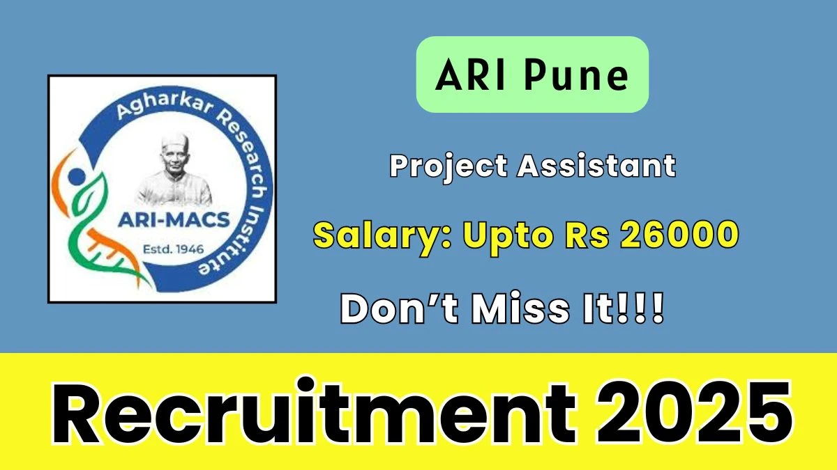 MACS Agharkar Research Institute (ARI Pune) has released an official notification for the recruitment of 01 Project Assistant Posts. Interested and eligible candidates can apply Online through the official ARI Pune website. The last date to submit the application form is 26-12-2025. In this article, you’ll find the ARI Pune Project Assistant Posts recruitment details, including eligibility criteria, age limit, salary structure, selection process, application steps, and direct links to the official notification and Online application form.