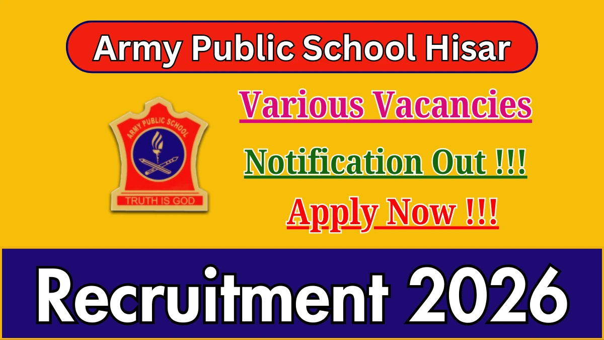 Army Public School Hisar has released an official notification for the recruitment of 41 PGT, TGT And More Posts. Interested and eligible candidates can apply Offline through the official Army Public School Hisar website. The last date to submit the application form is 29-01-2026. In this article, you’ll find the Army Public School Hisar PGT, TGT And More Posts recruitment details, including eligibility criteria, age limit, salary structure, selection process, application steps, and direct links to the official notification and Offline application form.