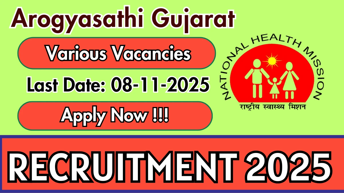 Arogyasathi Gujarat has released an official notification for the recruitment of 38 Taluka Programme Assistant, Medical Officer and More Posts. Interested and eligible candidates can apply Online through the official Arogyasathi Gujarat website. The last date to submit the application form is 08-11-2025. In this article, you’ll find the Arogyasathi Gujarat Taluka Programme Assistant, Medical Officer and More Posts recruitment details, including eligibility criteria, age limit, salary structure, selection process, application steps, and direct links to the official notification and Online application form.