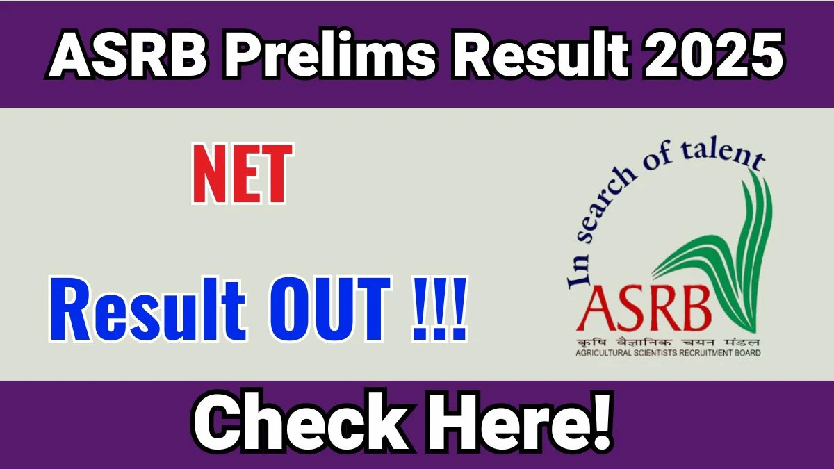 ASRB NET Result 2025 | ICAR ASRB NET Scorecard | ASRB NET Qualifying Marks 2025 | asrb.org.in Result | ASRB NET Prelims Result | NET 2025 Qualification List | ARS Mains Exam Date 2025 | ASRB STO SMS Result