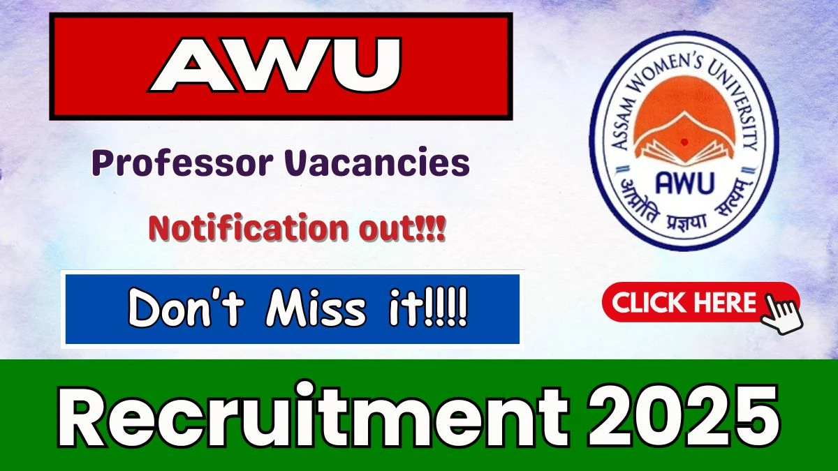 Assam Womens University (AWU) has released an official notification for the recruitment of 05 Professor Posts. Interested and eligible candidates can apply Offline through the official AWU website. The last date to submit the application form is 27-10-2025. In this article, you’ll find the AWU Professor Posts recruitment details, including eligibility criteria, age limit, salary structure, selection process, application steps, and direct links to the official notification and Offline application form.
