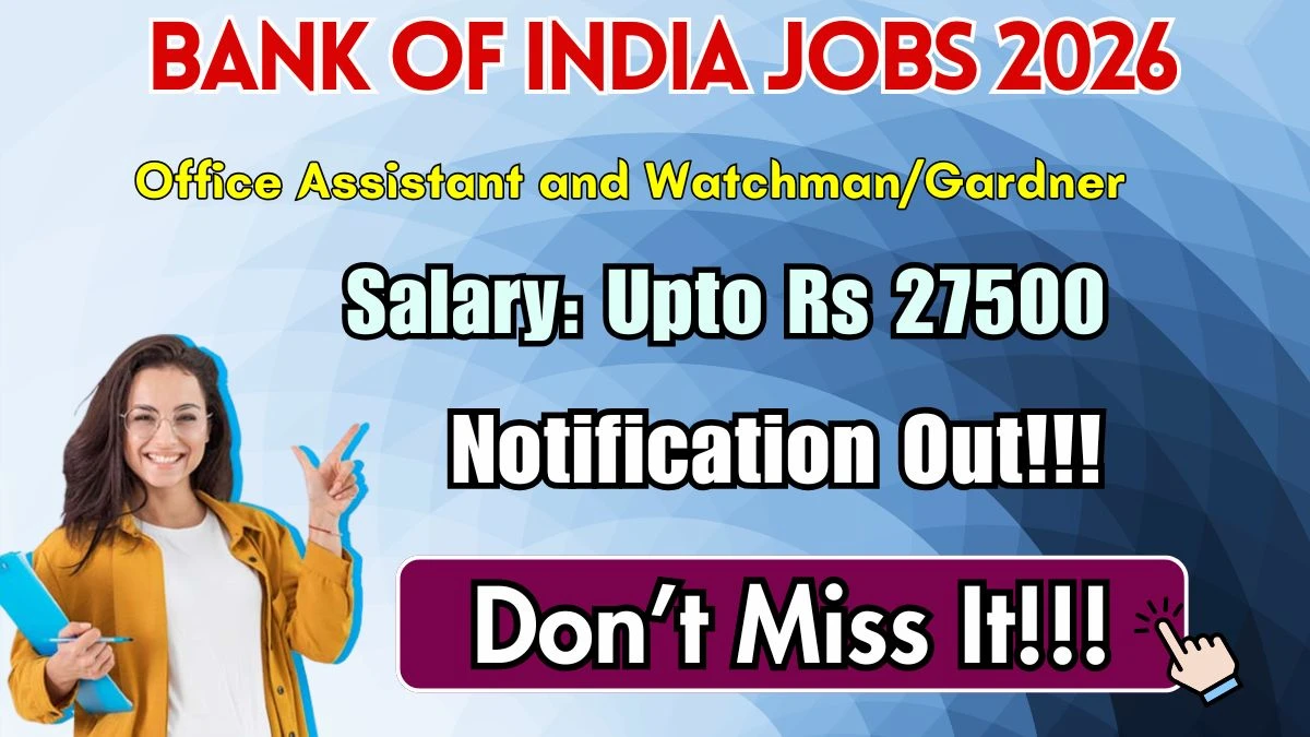 Bank of India Office Assistant & Watchman/Gardner Notification 2026 has been released on the official website bankofindia.co.in. A total of 3 vacancies have been announced through the Bank of India Recruitment 2026 for Office Assistant and Watchman/Gardner posts.