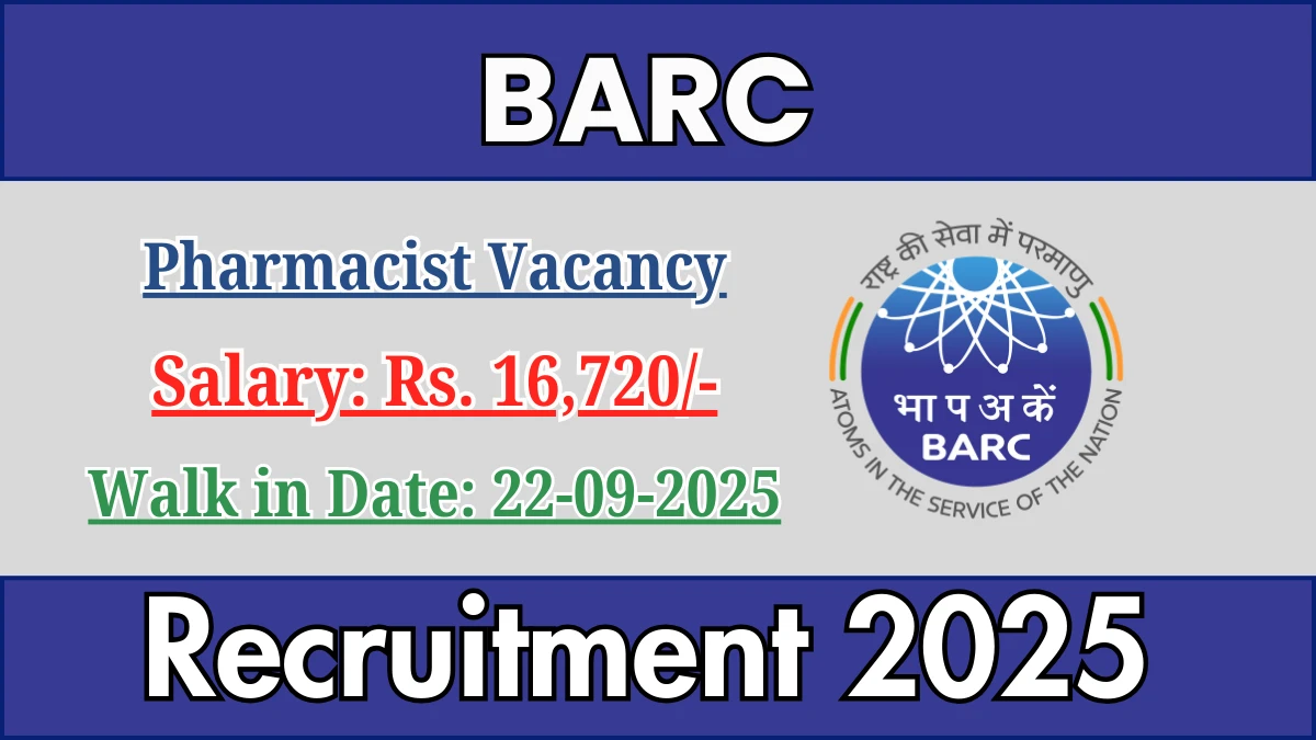 Bhabha Atomic Research Centre (BARC) Recruitment 2025 for 05 posts of Pharmacist. Candidates with 12TH Can attend the walkin. The Walk-in on 22-09-2025. For detailed information please visit BARC official website, barc.gov.in.