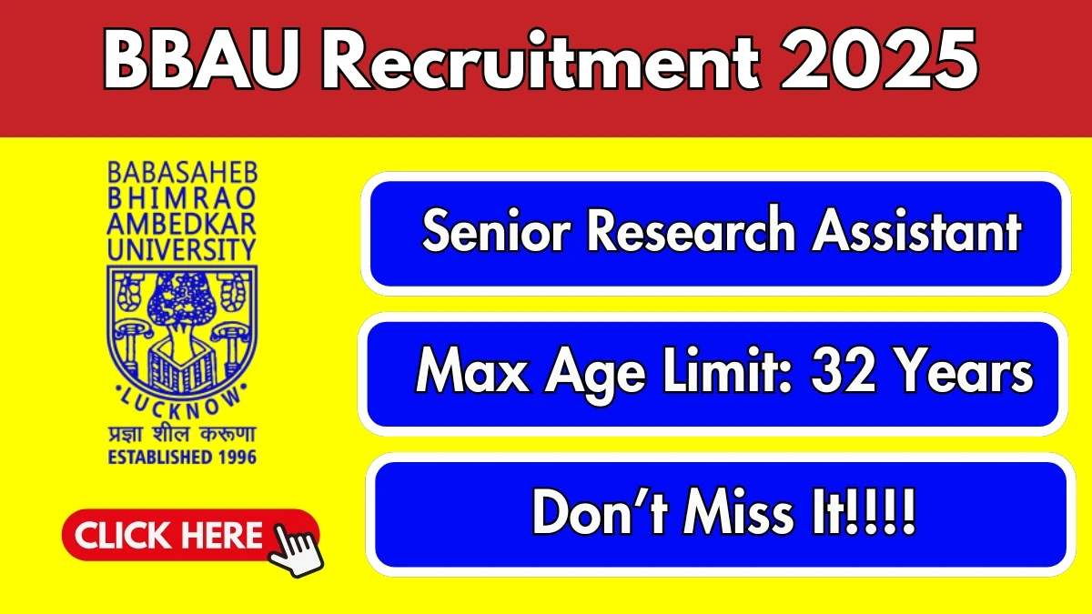 Babasaheb Bhimrao Ambedkar University (BBAU) has released an official notification for the recruitment of 01 Senior Research Assistant Posts. Interested and eligible candidates can apply Offline through the official BBAU website. The last date to submit the application form is 25-10-2025. In this article, you’ll find the BBAU Senior Research Assistant Posts recruitment details, including eligibility criteria, age limit, salary structure, selection process, application steps, and direct links to the official notification and Offline application form.
