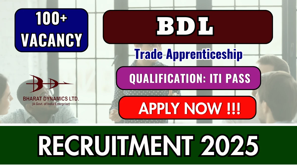 Bharat Dynamics (BDL) has released an official notification for the recruitment of 110 Trade Apprenticeship Posts. Interested and eligible candidates can apply Online through the official BDL website. The last date to submit the application form is 30-10-2025. In this article, you’ll find the BDL Trade Apprenticeship Posts recruitment details, including eligibility criteria, age limit, salary structure, selection process, application steps, and direct links to the official notification and Online application form.