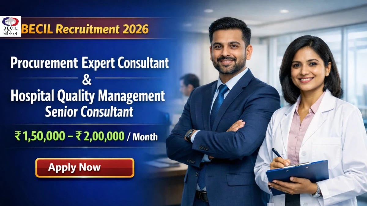 Broadcast Engineering Consultants India Limited (BECIL) Procurement- Expert Consultant and Hospital Quality Management- Senior Consultant Notification 2026 has been released on the official website www.becil.com . A total of 2 vacancies have been announced through the BECIL Procurement- Expert Consultant and Hospital Quality Management- Senior Consultant Recruitment 2026.