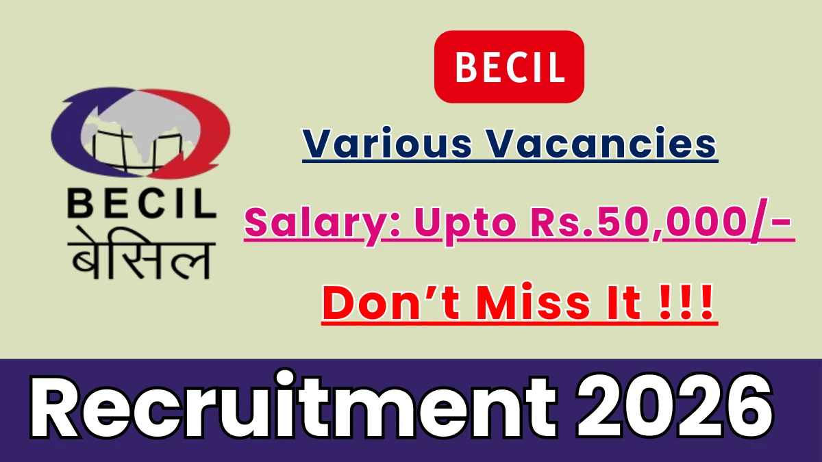 Broadcast Engineering Consultants India Limited (BECIL) Recruitment 2026 for 3 posts of Section officer / Junior Assistant / Junior Assistant cum IT Assistant. The Walk-in on 27-02-2026. For detailed information please visit BECIL official website.