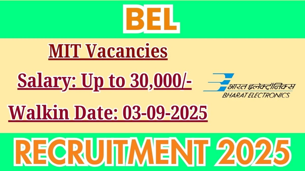 Bharat Electronics (BEL) Recruitment 2025 posts of Management Industrial Trainee. Candidates with CA Can attend the walkin. The Walk-in on 03-09-2025. For detailed information please visit BEL official website, bel-india.in.