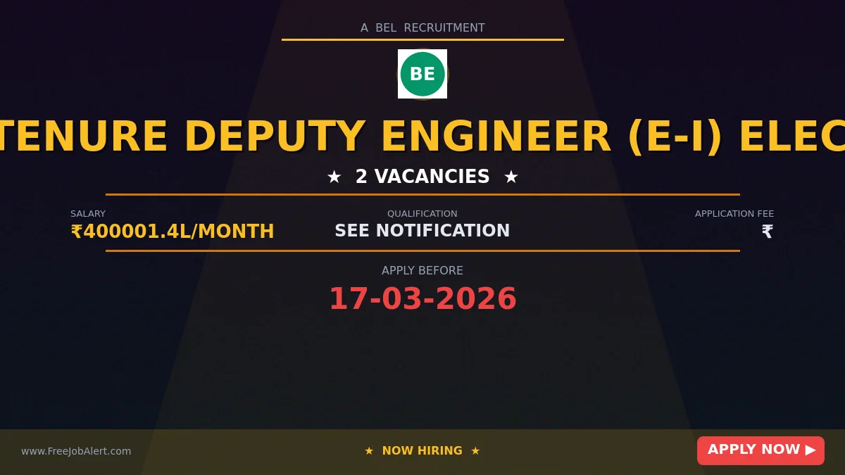 Bharat Electronics (BEL) has released an official notification for the recruitment of 2 Fixed Tenure Deputy Engineer (E-I) Posts. Interested and eligible candidates can apply Offline by sending the application form to the official address. The last date to submit the application is 17-03-2026.