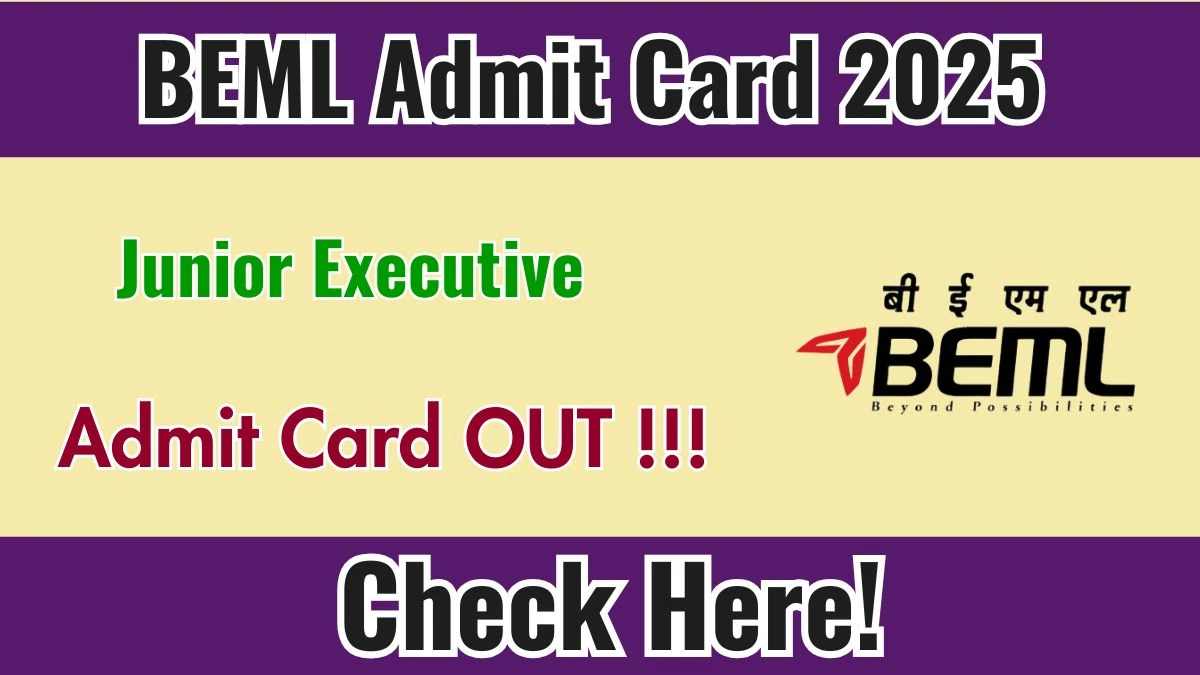 Download BEML Junior Executive Admit Card 2025 now! Get direct link, step-by-step process, and important exam details. Visit bemlindia.in to download.