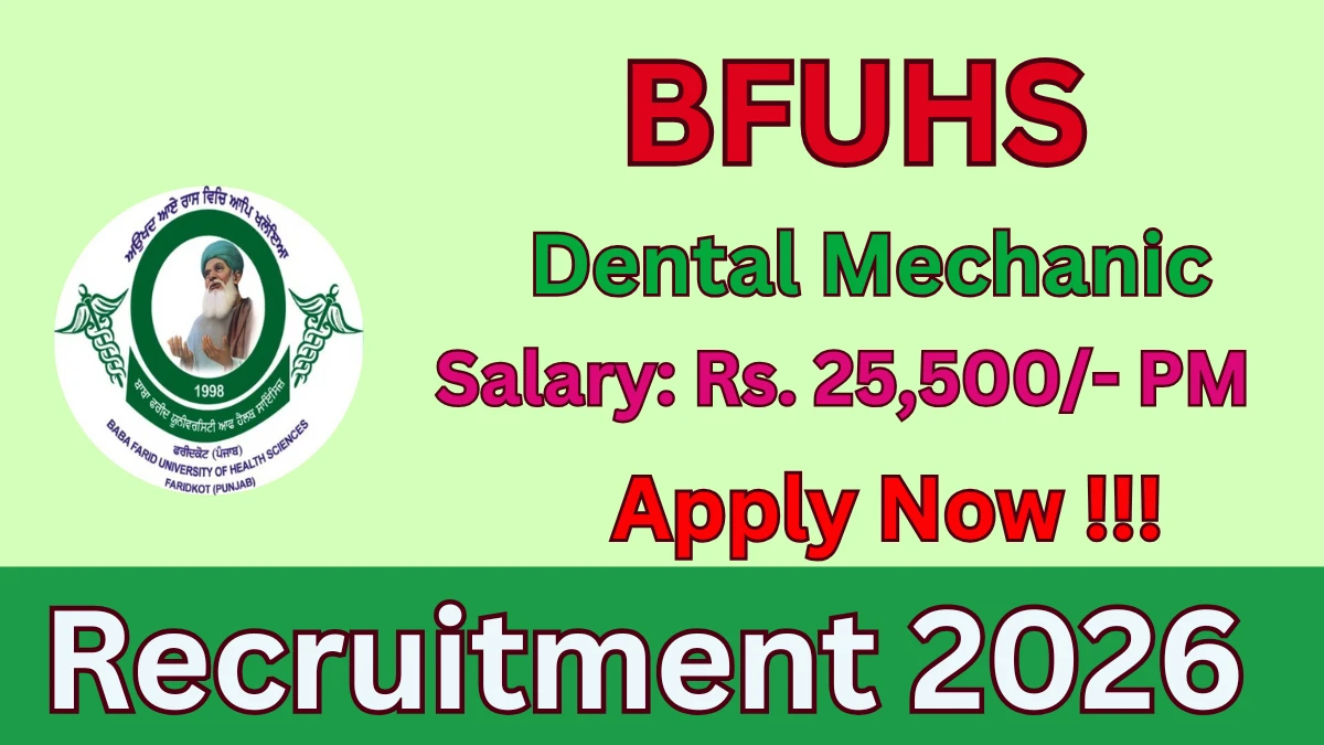 Baba Farid University of Health Sciences (BFUHS) has released an official notification for the recruitment of 01 Dental Mechanic Posts. Interested and eligible candidates can apply Online through the official BFUHS website. The last date to submit the application form is 24-02-2026. In this article, you’ll find the BFUHS Dental Mechanic Posts recruitment details, including eligibility criteria, age limit, salary structure, selection process, application steps, and direct links to the official notification and Online application form.