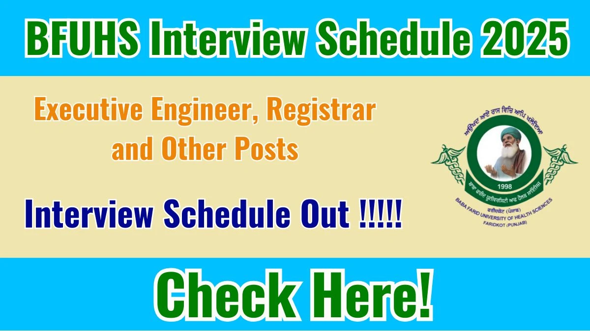 BFUHS Executive Engineer, Registrar and Other Posts Interview Schedule 2025 is officially notified.