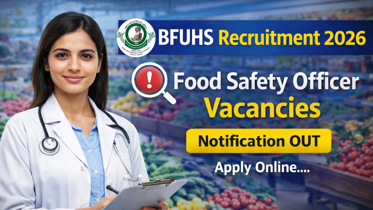 Baba Farid University of Health Sciences (BFUHS), Faridkot has released the BFUHS Food Safety Officer Recruitment 2026 (Advt. No. BFU‑26/05) notification inviting online applications for 05 Group‑C Food Safety Officer posts under the Food & Drug Administration, DHS, Punjab. Eligible graduates and postgraduates in Food Technology, Dairy Technology, Biotechnology, Agricultural Science, Veterinary Sciences, Biochemistry, Microbiology, Chemistry, medicine and other FSSAI‑recognized disciplines can apply online for Punjab Food Safety Officer Vacancy 2026 from 09 March 2026 to 29 March 2026 through the official website bfuhs.ac.in.