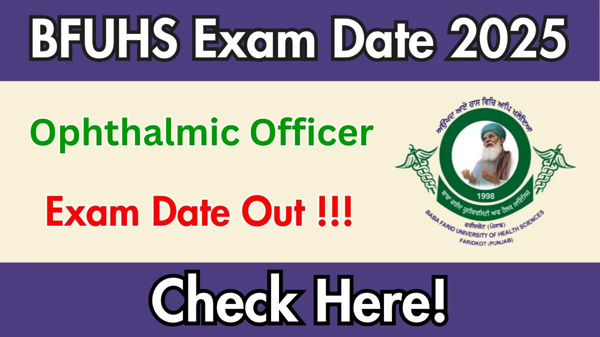 BFUHS Exam Date 2025: The Baba Farid University of Health Sciences has officially released the exam date for the Ophthalmic Officer recruitment. Candidates who have applied for the Ophthalmic Officer posts can check the complete exam schedule below. The examination is scheduled to be held on 18-12-2025. All eligible candidates are advised to download their admit cards and prepare accordingly.