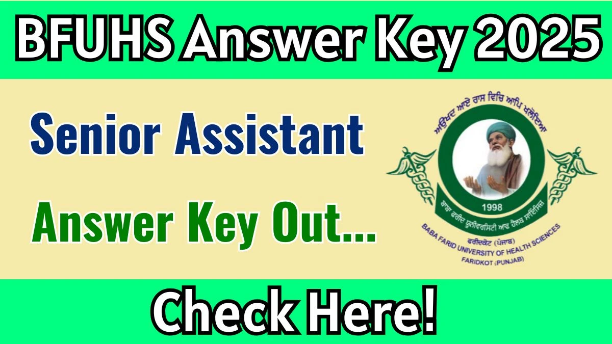 The Baba Farid University of Health Sciences (BFUHS) has officially published the answer key for the Senior Assistant recruitment exam 2025. Candidates who appeared for the examination can now review the answer key. The recruitment exam for Senior Assistant positions was successfully held from 19-08-2025. Applicants are advised to carefully review the answer key and submit any challenges within the stipulated timeframe, as no objections will be accepted after the deadline.