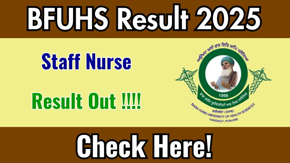 Candidates can check the BFUHS Result 2025 for the Staff Nurse post which is officially released by the Baba Farid University of Health Sciences. Candidates who are eagerly waiting to download the BFUHS Staff Nurse Result 2025 can view the Result from the official link which is provided below.