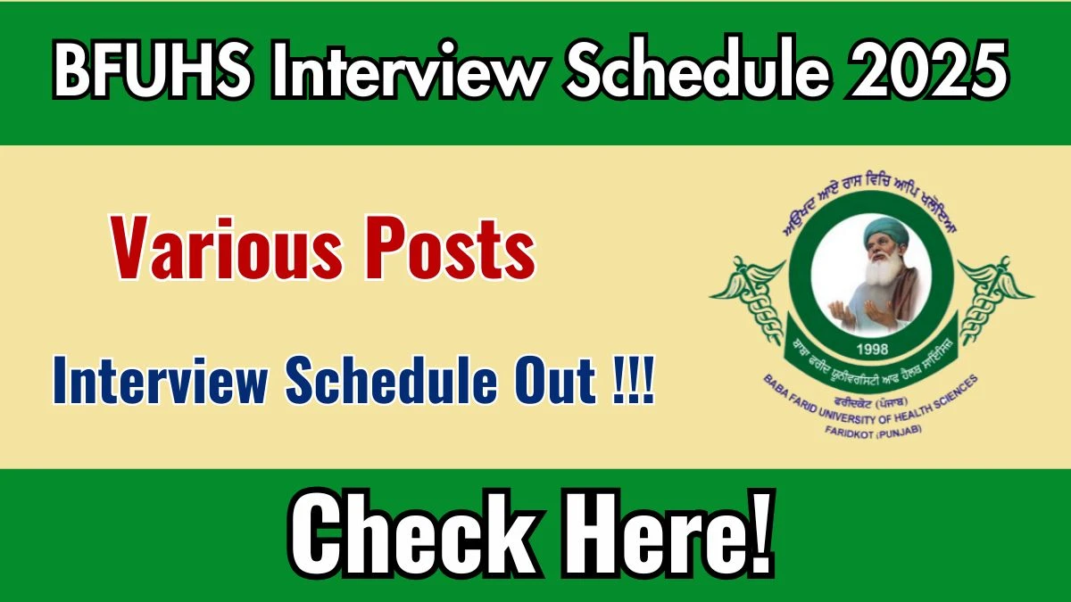 Baba Farid University of Health Sciences has successfully conducted the examination for the post of Various Posts. Baba Farid University of Health Sciences has announced the Various Posts Interview Schedule 2025 after the result has been declared. Candidates who have been selected from the merit list and have got shortlisted can check and download the BFUHS Various Posts Interview Schedule 2025 . Candidates can download the BFUHS Various Posts Interview Schedule 2025 from the official website of the Baba Farid University of Health Sciences.