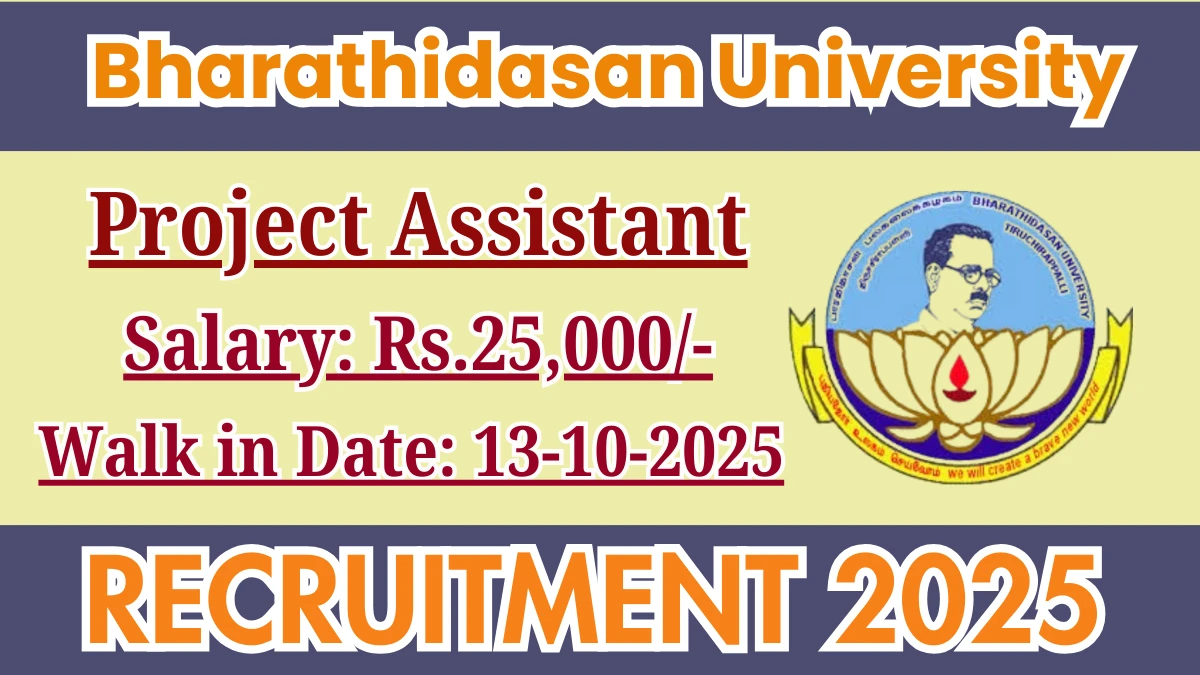 Bharathidasan University Recruitment 2025 for 01 posts of Project Assistant. Candidates with M.Sc Can attend the walkin. The Walk-in on 13-10-2025. For detailed information please visit Bharathidasan University official website, bdu.ac.in.
