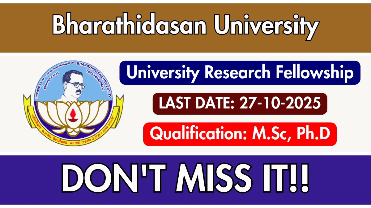Bharathidasan University has released an official notification for the recruitment of 01 University Research Fellowship Posts. Interested and eligible candidates can apply Offline through the official Bharathidasan University website. The last date to submit the application form is 27-10-2025. In this article, you’ll find the Bharathidasan University Research Fellowship Posts recruitment details, including eligibility criteria, age limit, salary structure, selection process, application steps, and direct links to the official notification and Offline application form.