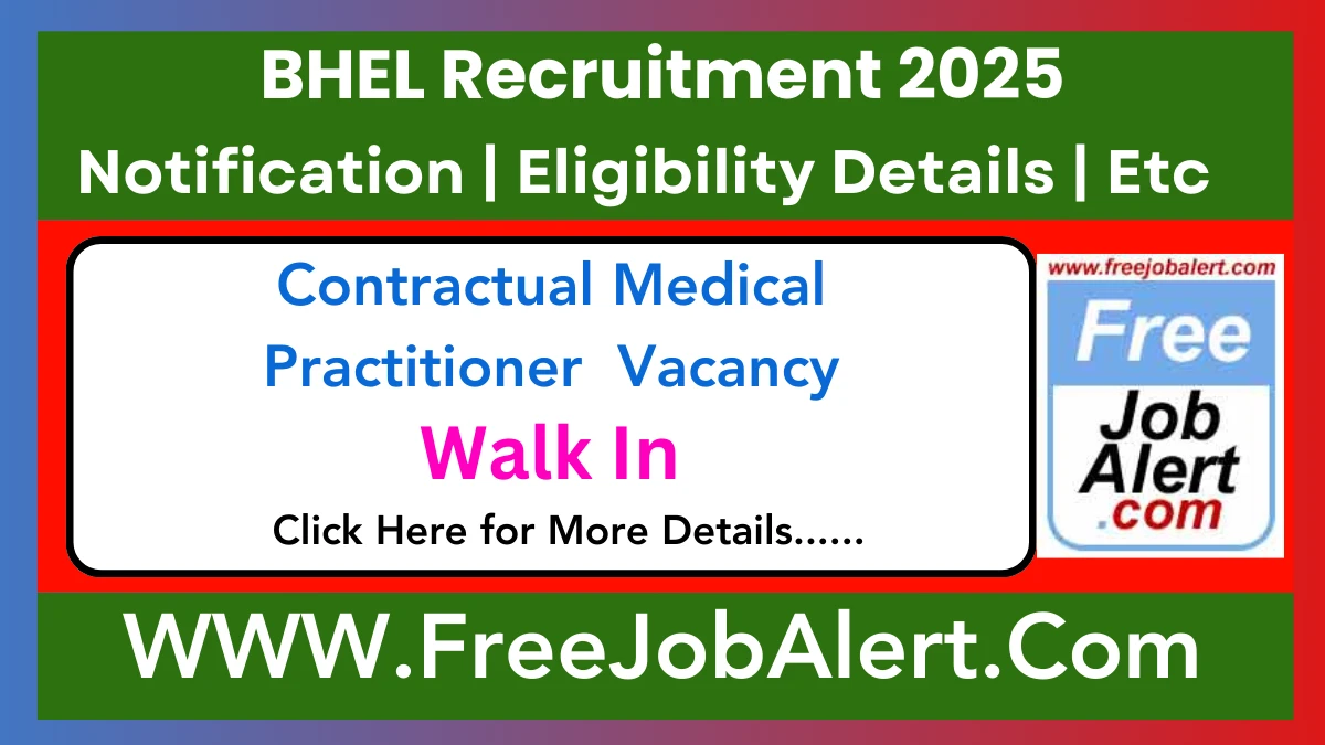 Name of the Post: BHEL Contractual Medical Practitioner Walk in 2025