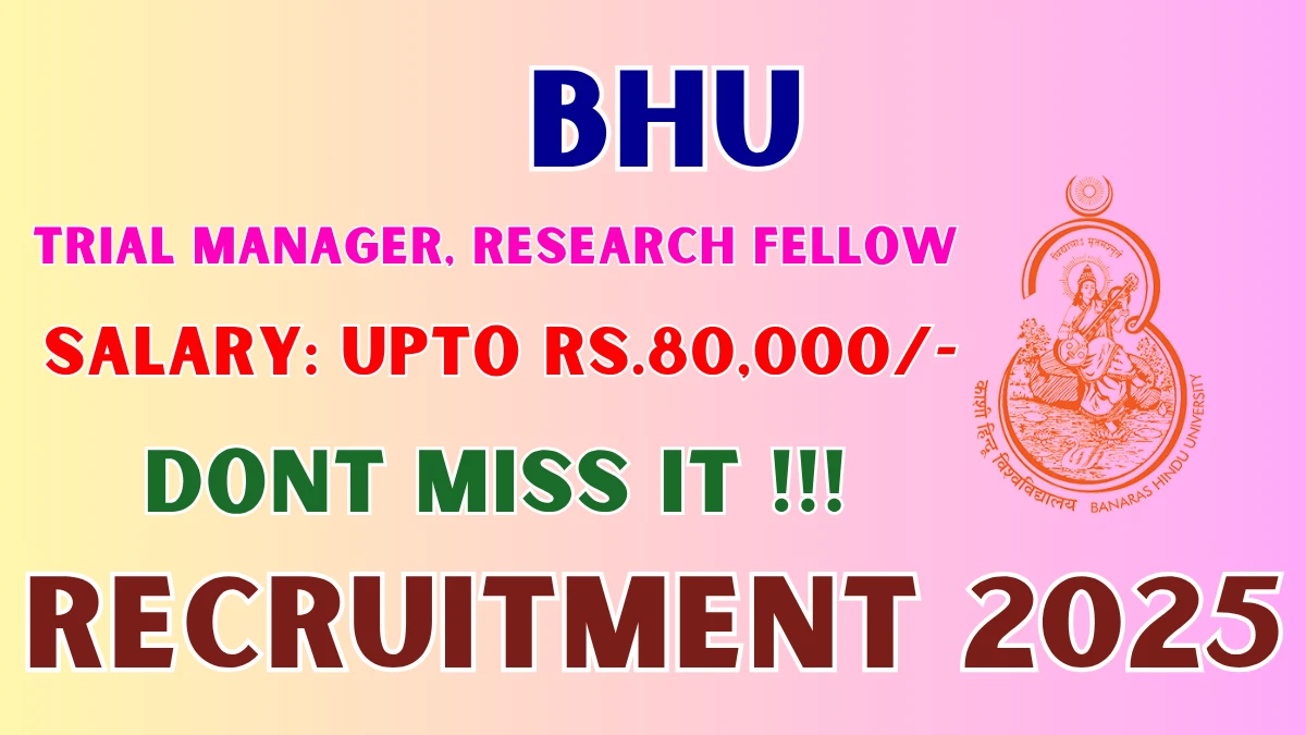 Banaras Hindu University (BHU) has released an official notification for the recruitment of 03 Trial Manager, Research Fellow Posts. Interested and eligible candidates can apply Offline through the official BHU website. The last date to submit the application form is 05-12-2025. In this article, you’ll find the BHU Trial Manager, Research Fellow Posts recruitment details, including eligibility criteria, age limit, salary structure, selection process, application steps, and direct links to the official notification and Offline application form.