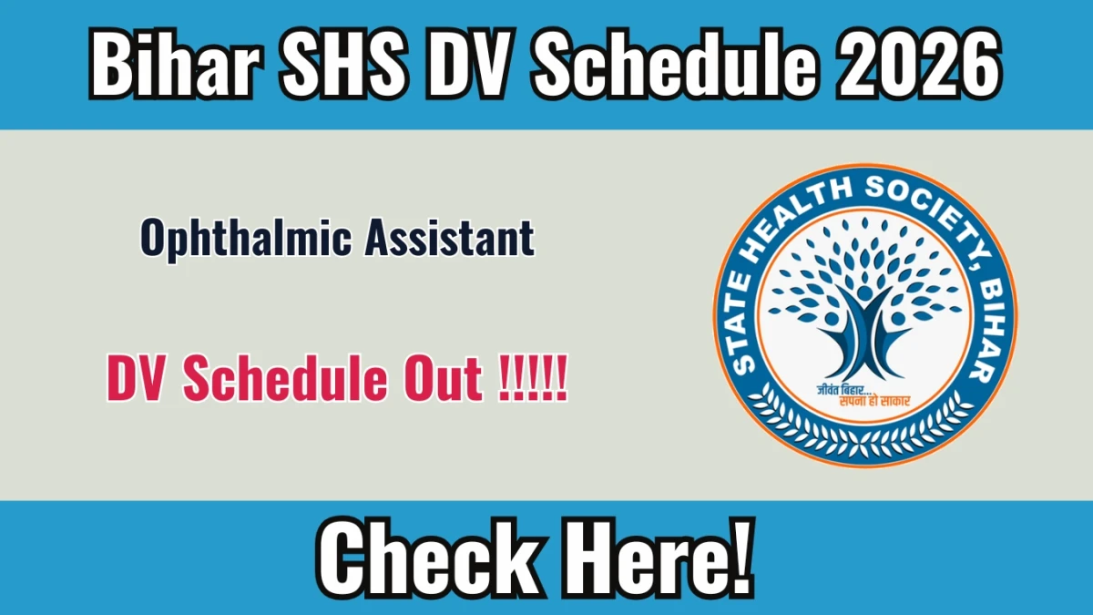 Bihar SHS DV Schedule 2026: The State Health Society Bihar (SHS Bihar) has officially released the list of shortlisted candidates for Document Verification (DV) for the Ophthalmic Assistant recruitment under Advt. No. 07/2025. Candidates who have qualified the CBT exam can check the shortlist, which serves as the basis for DV. The document verification process follows the result declaration on 09 March 2026.