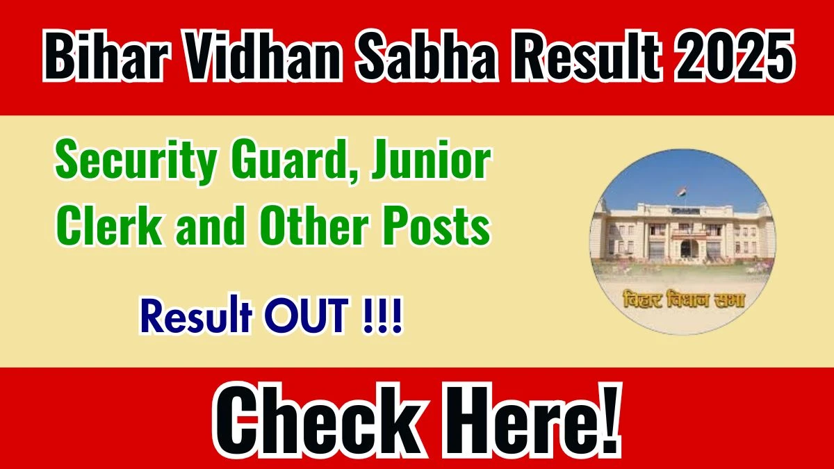 On 25-10-2025, Bihar Vidhan Sabha Security Guard, Junior Clerk and Other Posts Result 2025 is out! Bihar Vidhan Sabha Security Guard, Junior Clerk and Other Posts Result 2025 released on vidhansabha.bihar.gov.in. Bihar Vidhan Sabha has conducted the exam for Security Guard, Junior Clerk and Other Posts in various centers across the country/state. Candidates can check and download their results by visiting the vidhansabha.bihar.gov.in.