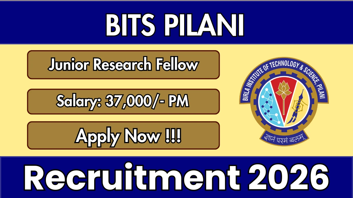 The Birla Institute of Technology & Science Pilani (BITS Pilani) Junior Research Fellow Notification 2026 has been released on its official website. A total of 1 vacancy has been announced through the BITS Pilani Junior Research Fellow Recruitment 2026.