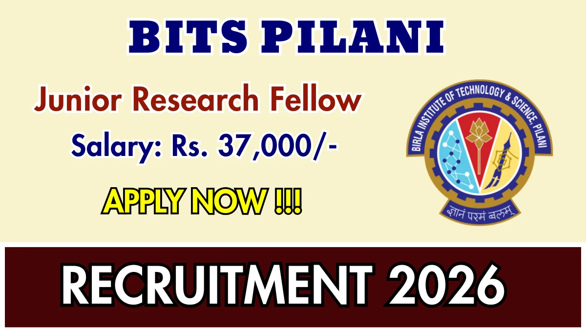 Birla Institute of Technology Science Pilani (BITS Pilani) has released an official notification for the recruitment of 01 Junior Research Fellow Posts. Interested and eligible candidates can apply Online through the official BITS Pilani website. The last date to submit the application form is 31-01-2026. In this article, you’ll find the BITS Pilani Junior Research Fellow Posts recruitment details, including eligibility criteria, age limit, salary structure, selection process, application steps, and direct links to the official notification and Online application form.