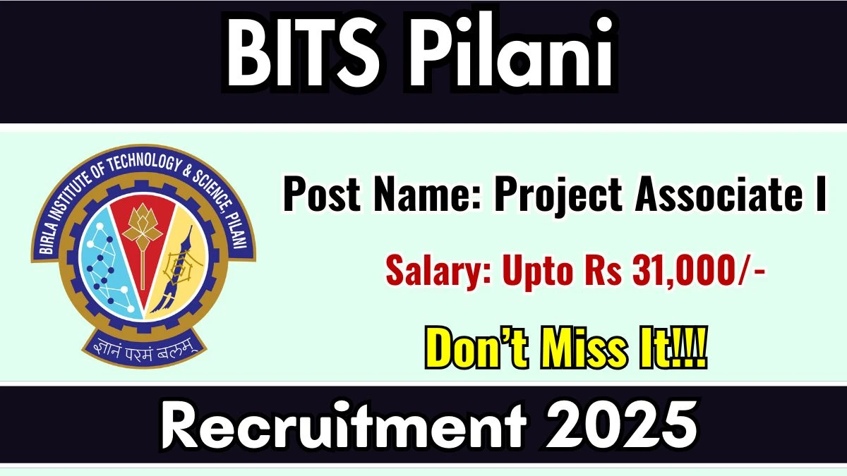 Birla Institute of Technology And Science Pilani (BITS Pilani) has released an official notification for the recruitment of 01 Project Associate I Posts. Interested and eligible candidates can apply Online through the official BITS Pilani website. The last date to submit the application form is 16-11-2025. In this article, you’ll find the BITS Pilani Project Associate I Posts recruitment details, including eligibility criteria, age limit, salary structure, selection process, application steps, and direct links to the official notification and Online application form.