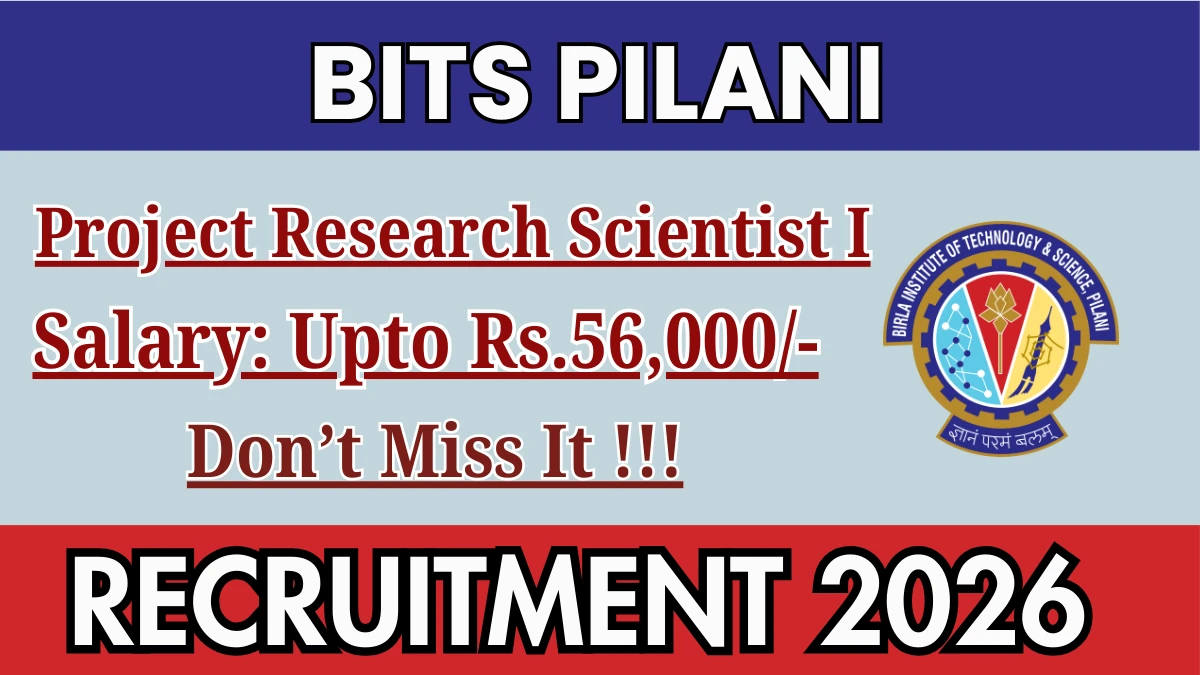 Birla Institute of Technology and Science Pilani (BITS Pilani) has released an official notification for the recruitment of 01 Project Research Scientist I Posts. Interested and eligible candidates can apply Offline through the official BITS Pilani website. The last date to submit the application form is 15-02-2026. In this article, you’ll find the BITS Pilani Project Research Scientist I Posts recruitment details, including eligibility criteria, age limit, salary structure, selection process, application steps, and direct links to the official notification and Offline application form.