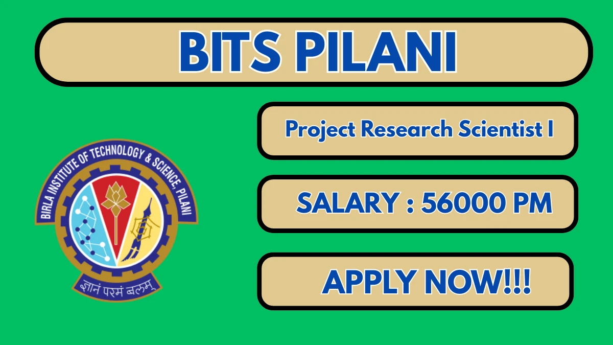 Birla Institute of Technology Science Pilani (BITS Pilani) has released an official notification for the recruitment of 01 Project Research Scientist I Posts. Interested and eligible candidates can apply Online through the official BITS Pilani website. The last date to submit the application form is 31-01-2026. In this article, you’ll find the BITS Pilani Project Research Scientist I Posts recruitment details, including eligibility criteria, age limit, salary structure, selection process, application steps, and direct links to the official notification and Online application form.
