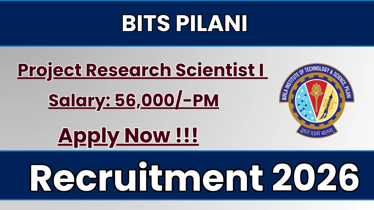 Birla Institute of Technology Science Pilani (BITS Pilani) has released an official notification for the recruitment of 01 Project Research Scientist I Posts. Interested and eligible candidates can apply Online through the official BITS Pilani website. The last date to submit the application form is 25-02-2026. In this article, you’ll find the BITS Pilani Project Research Scientist I Posts recruitment details, including eligibility criteria, age limit, salary structure, selection process, application steps, and direct links to the official notification and Online application form.