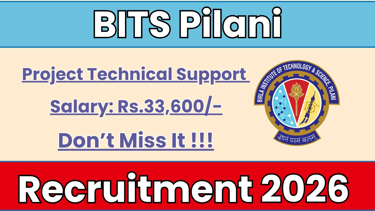 Birla Institute of Technology Science Pilani (BITS Pilani) has released an official notification for the recruitment of Project Technical Support III Posts. Interested and eligible candidates can apply Offline through the official BITS Pilani website. The last date to submit the application form is 08-02-2026. In this article, you’ll find the BITS Pilani Project Technical Support III Posts recruitment details, including eligibility criteria, age limit, salary structure, selection process, application steps, and direct links to the official notification and Offline application form.
