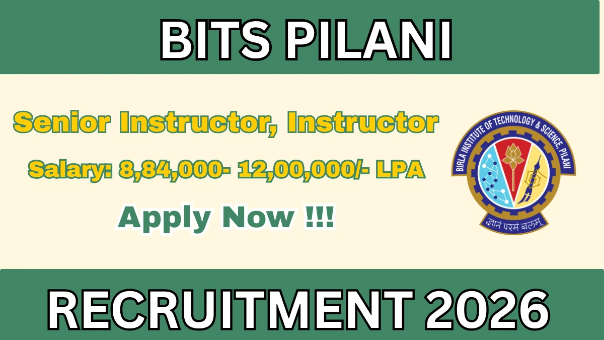 Birla Institute of Technology and Science Pilani (BITS Pilani) Senior Instructor & Instructor (Off-Campus) Notification 2026 has been released on Not Mentioned on the official website bits-pilani.ac.in. A total of 8 vacancies have been announced through the BITS Pilani Senior Instructor & Instructor (Off-Campus) Recruitment 2026.