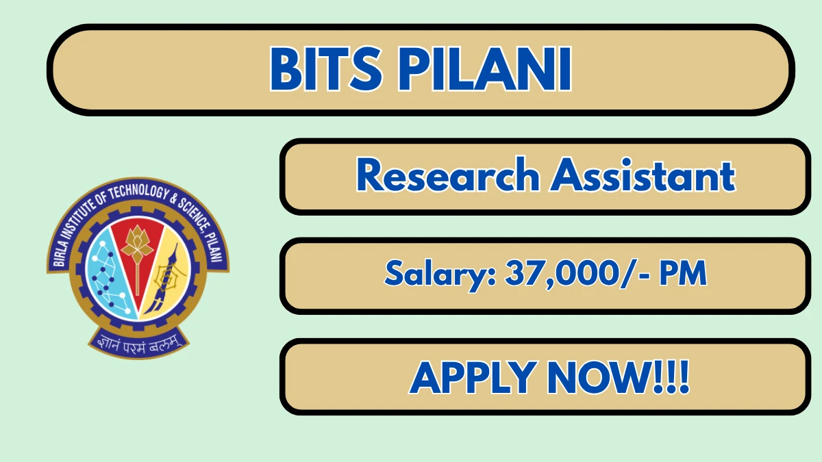 Birla Institute of Technology and Science Pilani (BITS Pilani) Research Assistant Notification 2026 has been released on the official website of Birla Institute of Technology and Science Pilani. Has been announced through the BITS Pilani Research Assistant Recruitment 2026.