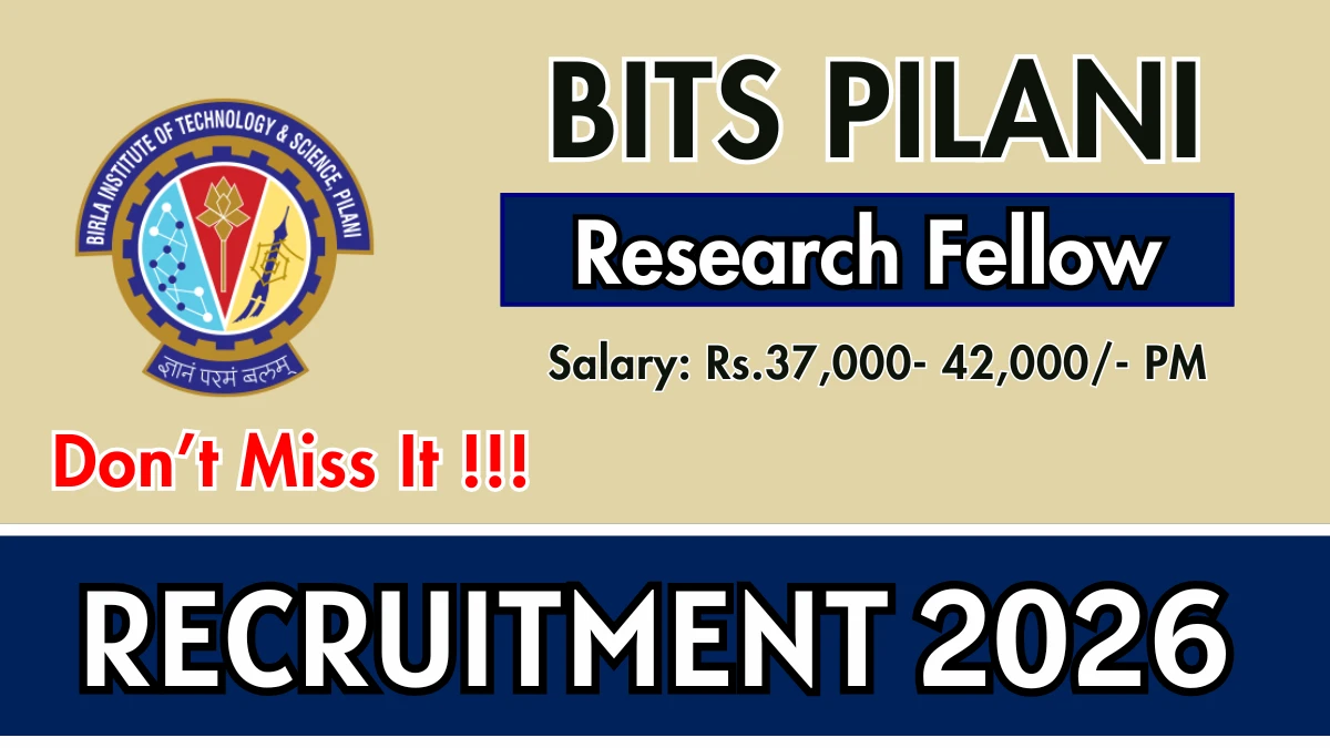 Birla Institute of Technology And Science Pilani (BITS Pilani) has released an official notification for the recruitment of Research Fellow Posts. Interested and eligible candidates can apply Online through the official BITS Pilani website. The last date to submit the application form is 28-02-2026. In this article, you’ll find the BITS Pilani Research Fellow Posts recruitment details, including eligibility criteria, age limit, salary structure, selection process, application steps, and direct links to the official notification and Online application form.
