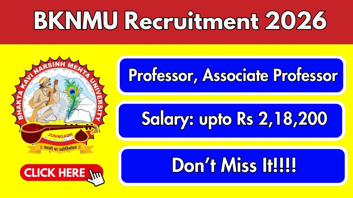 Bhakta Kavi Narsinh Mehta University (BKNMU) has released an official notification for the recruitment of 03 Professor, Associate Professor Posts. Interested and eligible candidates can apply Online through the official BKNMU website. The last date to submit the application form is 16-03-2026. In this article, you’ll find the BKNMU Professor, Associate Professor Posts recruitment details, including eligibility criteria, age limit, salary structure, selection process, application steps, and direct links to the official notification and Online application form.