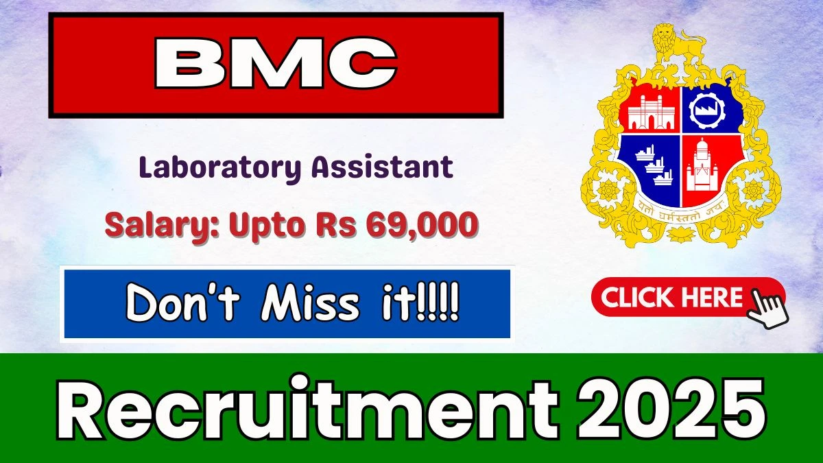 Brihanmumbai Municipal Corporation (BMC) has released an official notification for the recruitment of 01 Laboratory Assistant Posts. Interested and eligible candidates can apply Offline through the official BMC website. The last date to submit the application form is 09-01-2026. In this article, you’ll find the BMC Laboratory Assistant Posts recruitment details, including eligibility criteria, age limit, salary structure, selection process, application steps, and direct links to the official notification and Offline application form.