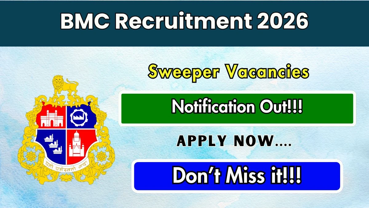 Brihanmumbai Municipal Corporation (BMC) has published the Sweeper Notification 2026 on 20 April 2026. The recruitment drive aims to fill 5 Sweeper positions. Candidates within the age range of 22 to 45 years and holding minimum 4th pass qualification (with preference for candidates residing near HBT clinic) are eligible to apply offline. The application process will be active from 20 April 2026 to 27 April 2026, and candidates can easily access the notification PDF and apply details below.