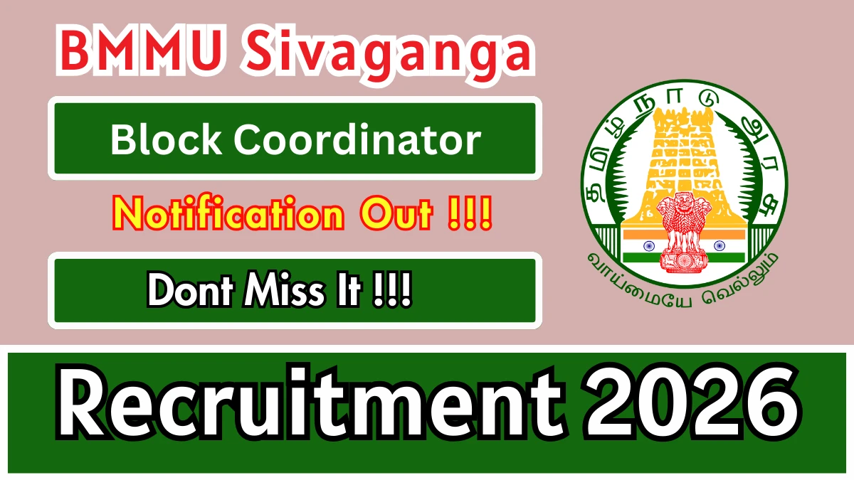 Block Mission Management Unit Sivaganga (BMMU Sivaganga) has released an official notification for the recruitment of Block Coordinator Posts. Interested and eligible candidates can apply Offline through the official BMMU Sivaganga website. The last date to submit the application form is 16-02-2026. In this article, you’ll find the BMMU Sivaganga Block Coordinator Posts recruitment details, including eligibility criteria, age limit, salary structure, selection process, application steps, and direct links to the official notification and Offline application form.