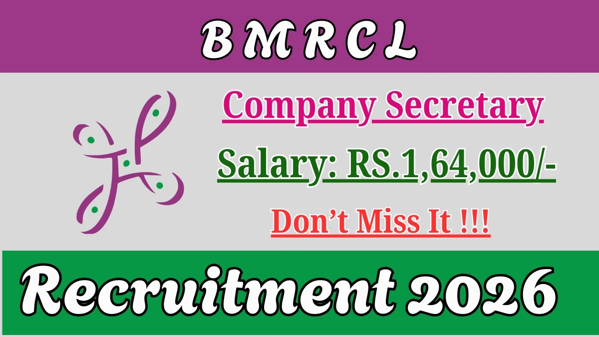 The Bangalore Metro Rail Corporation (BMRCL) Recruitment 2026 for posts of 01 Company Secretary. Candidates with Other Can Apply Online. The online application closes on 26-01-2026. The candidate shall apply online through BMRCL website, bmrc.co.in.