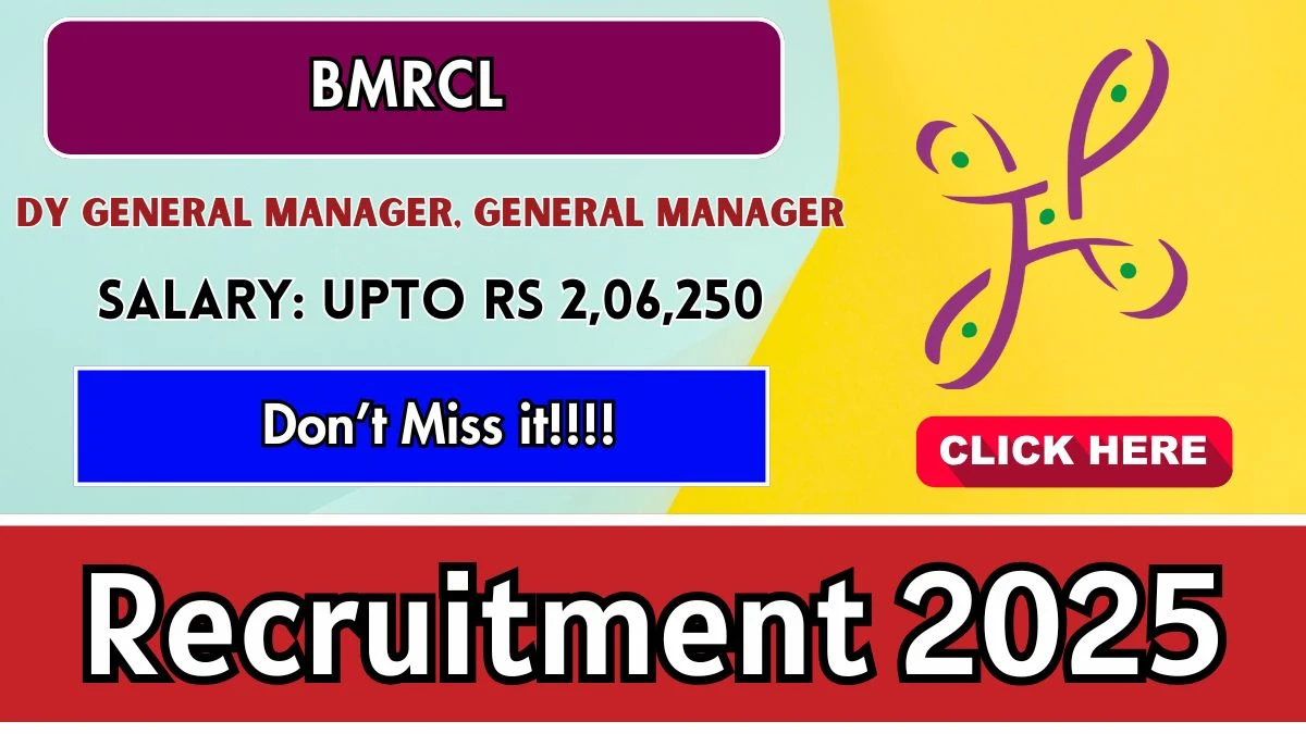 BMRCL General Manager & Deputy General Manager Recruitment 2025 Important Links