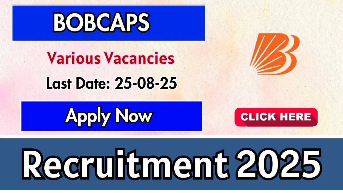 The BOBCAPS Assistant Manager, SVP and Other Recruitment 2025 Notification PDF has been released on 05-08-2025 at bobcaps.in. Check the complete job details, vacancy, age limit, application fee, selection process and how to apply from the article. You can Check all Latest Sarkari Result Updates of All Central Government Jobs and State Government Jobs.