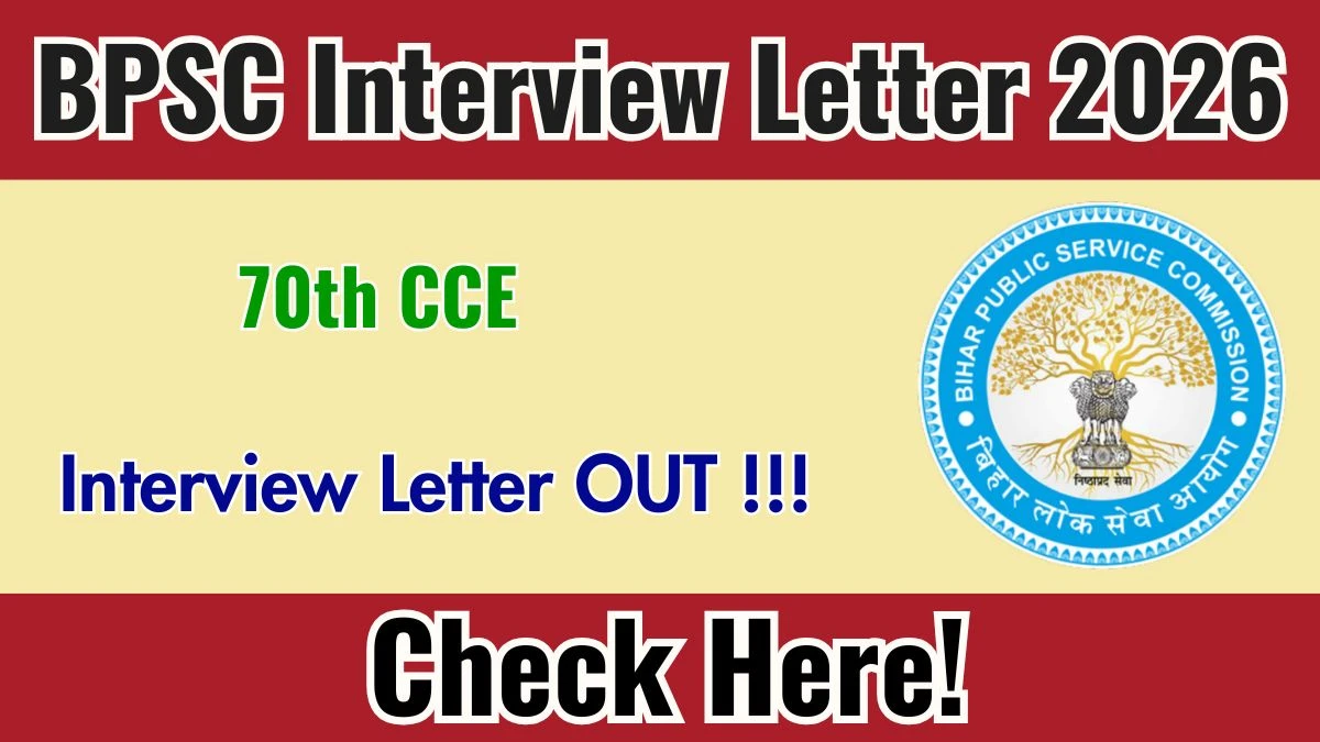 BPSC 70th Interview Letter 2026 has been released by Bihar Public Service Commission on 15 January 2026. Candidates who qualified the Mains Examination for the 70th Combined Competitive Examination (CCE) can download their interview call letter from the official website bpsc.bih.nic.in or bpsconline.bihar.gov.in. The interview (1st Phase) is scheduled from From 21 January 2026 at BPSC Office, Patna. This call letter is mandatory for appearing in the interview. Read below for the direct download link, step-by-step process, interview details, and important instructions for BPSC 70th Interview Letter 2026.