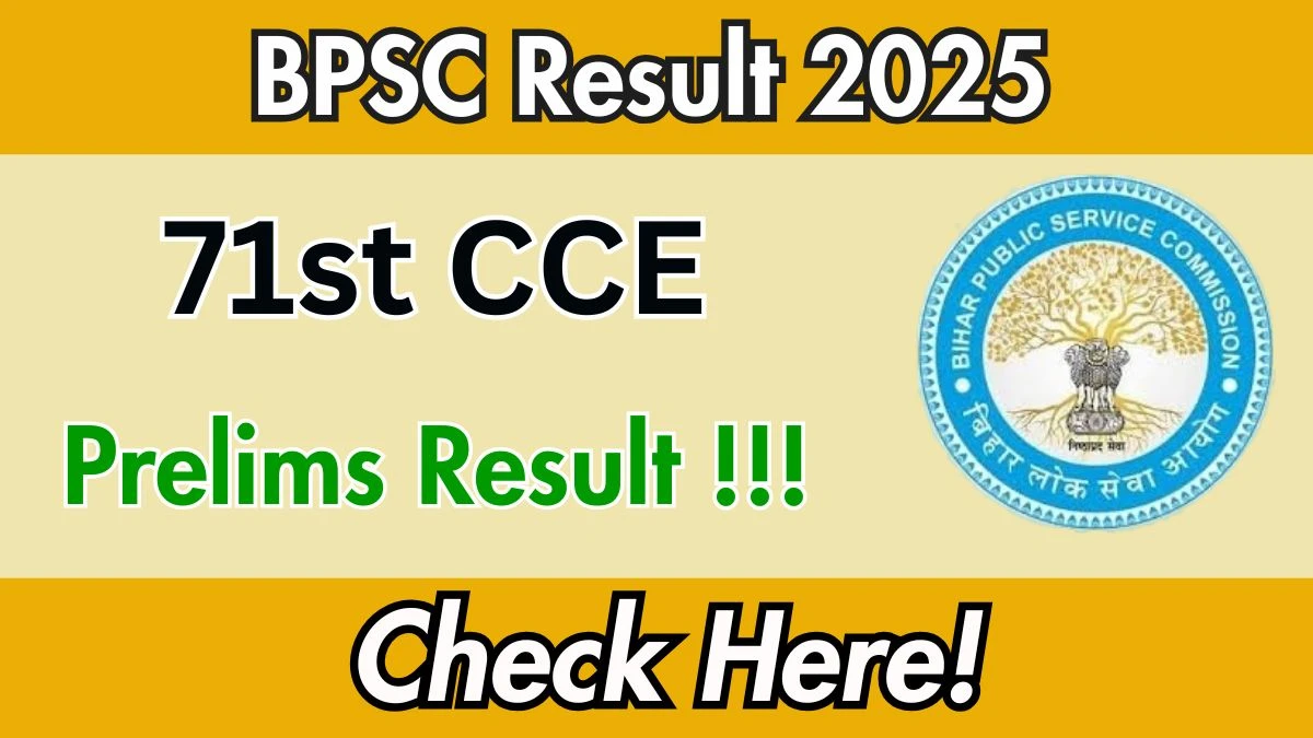 In the third week of October 2025, BPSC 71st CCE Result 2025 will be released! The BPSC 71st CCE Result 2025 will be available on bpsc.bihar.gov.in. BPSC will have conducted the exam for 71st CCE in various centres across the country/state. Candidates will be able to check and download their results by visiting bpsc.bihar.gov.in.