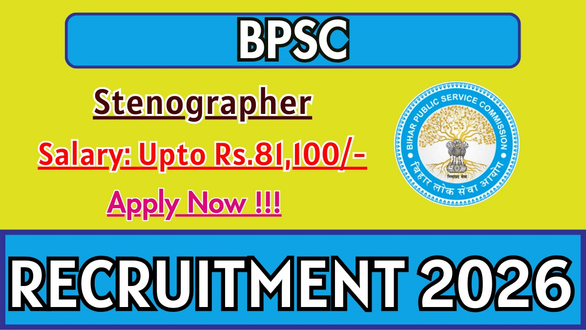 The Bihar Public Service Commission (BPSC) Recruitment 2026 for posts of 15 Stenographer. Candidates with 12TH Can Apply Offline. The Offline application opens on 12-01-2026, and closes on 02-02-2026. The candidate shall apply Offline through BPSC website, bpsc.bihar.gov.in.