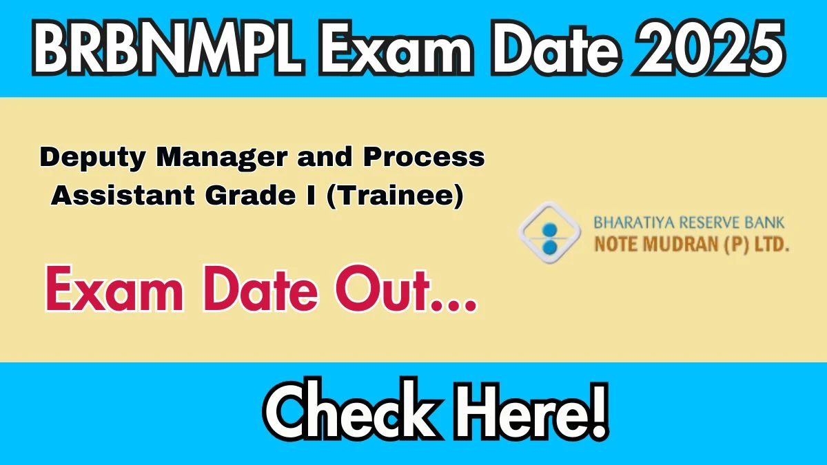The Bhartiya Reserve Bank Note Mudran has announced the Exam Date 2025 for the post of Deputy Manager and Process Assistant Grade I (Trainee). Candidates can check the BRBNMPL Exam Date 2025 notification on the official website - brbnmpl.co.in. The examination is scheduled for November 15, 2025. Further details about the BRBNMPL Exam Date 2025 can be obtained from our website. Download the BRBNMPL Exam Date 2025 from the provided website.